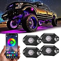 Amazon Com Rgb Led Rock Lights Kit Ychow Tech 4 Pods Underglow Multicolor Neon Light Bluetooth App Control Timing Function Flashing Music Mode Wheel Well Light Ip68 Exterior Light For Offroad Trucks Utv Atv